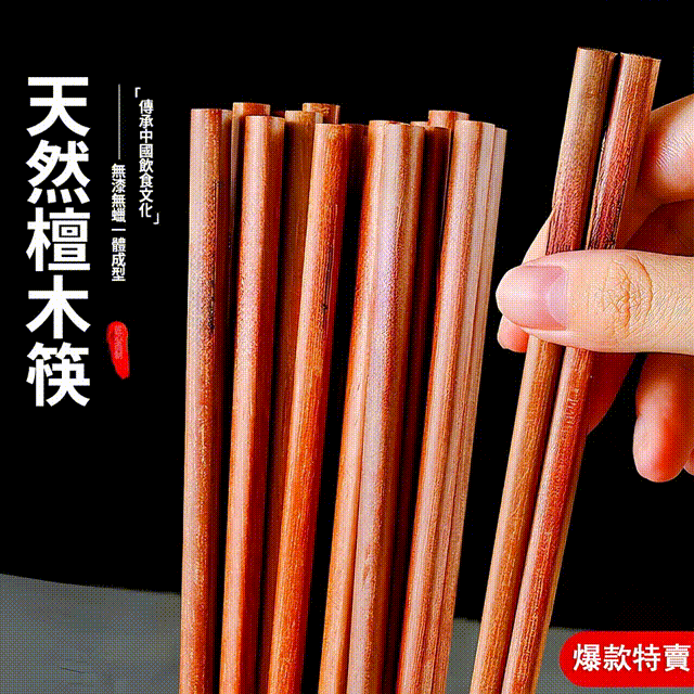 原木無漆無蠟紅檀木筷防霉防滑耐高溫